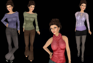Next up is Happy. Another adorable sweater dress with leggings. Happy has a cute polka-dot print, with 2 different color leggings, and 2 different types of skirts. The texturing of this dress is superb. The shading and buttons add an extra splash of detail that makes this sweater dress very realistic. Happy comes in 6 colors: teal, lime, yellow, red, pink, and sky (pictured). Happy is sold individually by color for $180 L or a fat pack of all 6 colors for $900 L. This dress is perfectly named, it really does make you happy!